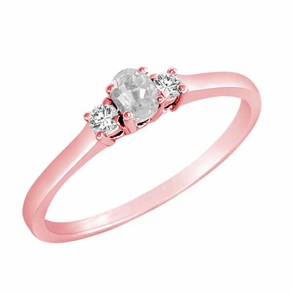 This dazzling sparkling timeless ring is classic and can be used as an engagement ring, anniversary ring, bridal ring, promise ring, proposal ring, fashion ring, wedding ring, cocktail ring and also to represent eternal love between you and that special someone.This 10K rose gold diamond ring is prong set with 2 round diamonds with a total carat weight of 0.09 carats and 1 oval white quartz gemstone with a total carat weight of 0.16 carats. The total carat weight of all the stones are approximately 0.25 carats. The diamonds are F-G color and SI1 clarity. The ring band measures approximately 1.50 mm wide and 1.0 mm thick. All our jewelry is shipped via FedEx Ground with a Certificate of Authenticity, jewelry polishing cloth, and jewelry box. BRAND : BRITNEY DIAMOND CLARITY : VS DIAMOND COLOR : F-G DIAMOND COUNT : 2 DIAMOND SETTING : PRONGS DIAMOND SHAPE : ROUND DIAMOND TCW : 0.09 GEM CATEGORY : WHITE QUARTZ GEM COUNT : 1 GEM SETTING : PRONGS GEM SHAPE : OVAL METAL : 10K ROSE GOLD SPECIAL : SEMI PRECIOUS JEWELRY