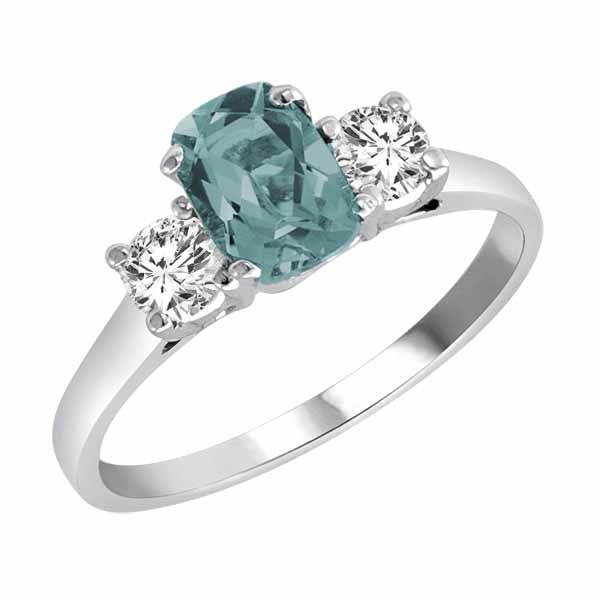 This dazzling sparkling timeless ring is classic and can be used as an engagement ring, anniversary ring, bridal ring, promise ring, proposal ring, fashion ring, wedding ring, cocktail ring and also to represent eternal love between you and that special someone.This 10K white gold diamond ring is prong set with 1 cushion aquamarine gemstone with a total carat weight of 0.60 carats and 2 round white diamonds with a total carat weight of 0.40 carats. The total carat weight of all the stones are approximately 0.95 carats. The diamonds are F-G color and SI1 clarity. The ring band measures approximately 1.80 mm wide and 1.0 mm thick. All our jewelry is shipped via FedEx Ground with a Certificate of Authenticity, jewelry polishing cloth, and jewelry box. BRAND : BRITNEY DIAMOND CLARITY : VS DIAMOND COLOR : F-G DIAMOND COUNT : 2 DIAMOND SETTING : PRONGS DIAMOND SHAPE : ROUND DIAMOND TCW : 0.45 GEM CATEGORY : AQUAMARINE GEM COUNT : 1 GEM SETTING : PRONGS GEM SHAPE : CUSHION METAL : 10K WHITE GOLD SPECIAL : 3 STONE