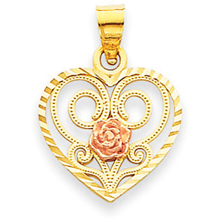 14k Rose and Yellow Gold Two-Tone Heart with Rose Heart Charm