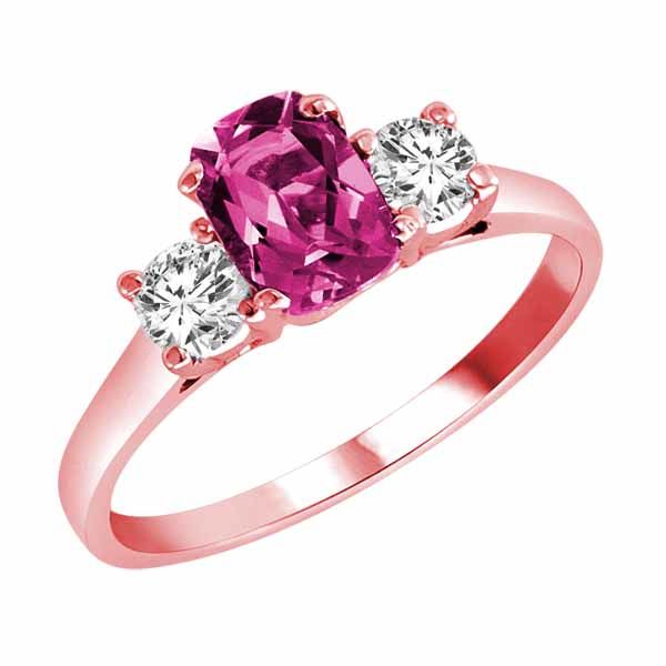 This dazzling sparkling timeless ring is classic and can be used as an engagement ring, anniversary ring, bridal ring, promise ring, proposal ring, fashion ring, wedding ring, cocktail ring and also to represent eternal love between you and that special someone.This 14K rose gold diamond ring is prong set with 2 round diamonds with a total carat weight of 0.40 carats and 1 cushion pink topaz gemstone with a total carat weight of 0.60 carats. The total carat weight of all the stones are approximately 0.95 carats. The diamonds are F-G color and SI1 clarity. The ring band measures approximately 1.80 mm wide and 1.0 mm thick. All our jewelry is shipped via FedEx Ground with a Certificate of Authenticity, jewelry polishing cloth, and jewelry box. BRAND : BRITNEY DIAMOND CLARITY : VS DIAMOND COLOR : F-G DIAMOND COUNT : 2 DIAMOND SETTING : PRONGS DIAMOND SHAPE : ROUND DIAMOND TCW : 0.45 GEM CATEGORY : PINK TOPAZ GEM COUNT : 1 GEM SETTING : PRONGS GEM SHAPE : CUSHION METAL : 14K ROSE GOLD SPECIAL : 3 STONE