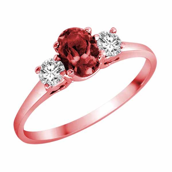 This dazzling sparkling timeless ring is classic and can be used as an engagement ring, anniversary ring, bridal ring, promise ring, proposal ring, fashion ring, wedding ring, cocktail ring and also to represent eternal love between you and that special someone.This 14K rose gold diamond ring is prong set with 2 round diamonds with a total carat weight of 0.16 carats and 1 oval garnet gemstone with a total carat weight of 0.30 carats. The total carat weight of all the stones are approximately 0.45 carats. The diamonds are F-G color and SI1 clarity. The ring band measures approximately 1.30 mm wide and 1.0 mm thick. All our jewelry is shipped via FedEx Ground with a Certificate of Authenticity, jewelry polishing cloth, and jewelry box. BRAND : BRITNEY DIAMOND CLARITY : VS DIAMOND COLOR : F-G DIAMOND COUNT : 2 DIAMOND SETTING : PRONGS DIAMOND SHAPE : ROUND DIAMOND TCW : 0.15 GEM CATEGORY : GARNET GEM COUNT : 1 GEM SETTING : PRONGS GEM SHAPE : OVAL METAL : 14K ROSE GOLD SPECIAL : 3 STONE