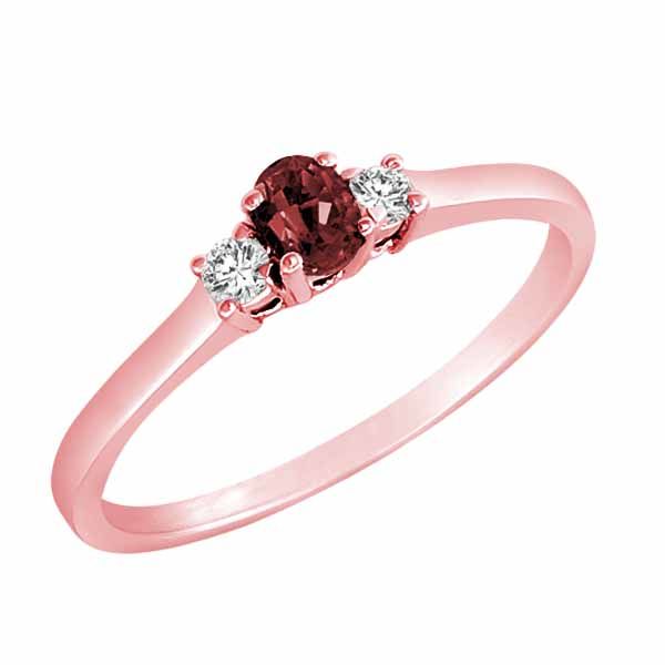 This dazzling sparkling timeless ring is classic and can be used as an engagement ring, anniversary ring, bridal ring, promise ring, proposal ring, fashion ring, wedding ring, cocktail ring and also to represent eternal love between you and that special someone.This 14K rose gold diamond ring is prong set with 2 round diamonds with a total carat weight of 0.09 carats and 1 oval ruby gemstone with a total carat weight of 0.16 carats. The total carat weight of all the stones are approximately 0.25 carats. The diamonds are F-G color and SI1 clarity. The ring band measures approximately 1.50 mm wide and 1.0 mm thick. All our jewelry is shipped via FedEx Ground with a Certificate of Authenticity, jewelry polishing cloth, and jewelry box. BRAND : BRITNEY DIAMOND CLARITY : VS DIAMOND COLOR : F-G DIAMOND COUNT : 2 DIAMOND SETTING : PRONGS DIAMOND SHAPE : ROUND DIAMOND TCW : 0.09 GEM CATEGORY : RUBY GEM COUNT : 1 GEM SETTING : PRONGS GEM SHAPE : OVAL METAL : 14K ROSE GOLD SPECIAL : 3 STONE