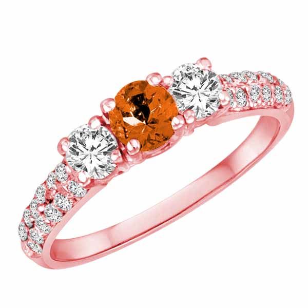 This dazzling sparkling timeless ring is classic and can be used as an engagement ring, anniversary ring, bridal ring, promise ring, proposal ring, fashion ring, wedding ring, cocktail ring and also to represent eternal love between you and that special someone.This 14K rose gold diamond ring is prong set with 2 round diamonds with a total carat weight of 0.45 and 1 round fire opal gemstone with a total carat weight of 0.45 carats. There are 20 sparkly diamonds on the shank of this ring (10 on each side) with a total carat weight of 0.20 carats. The total carat weight of all the stones are approximately 1.10 carats. The diamonds are F-G color and SI1 clarity. The ring band measures approximately 2.50 mm wide and 1.9 mm thick. All our jewelry is shipped via FedEx Ground with a Certificate of Authenticity, jewelry polishing cloth, and jewelry box. Size 11 1/2 BRAND : BRITNEY DIAMOND CLARITY : VS DIAMOND COLOR : F-G DIAMOND COUNT : 22 DIAMOND SETTING : PRONGS DIAMOND SHAPE : ROUND DIAMOND TCW : 0.6 GEM CATEGORY : FIRE OPAL GEM COUNT : 1 GEM SETTING : PRONGS GEM SHAPE : ROUND METAL : 14K ROSE GOLD SPECIAL : ENGAGEMENT RINGS