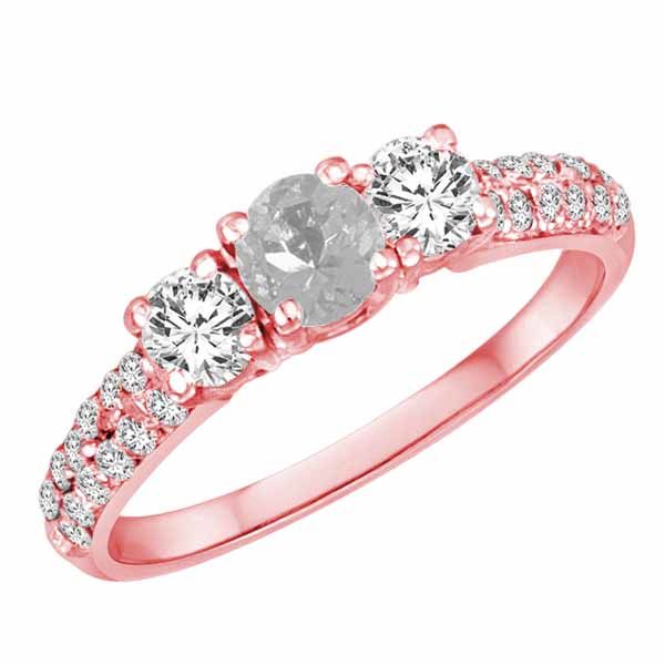 This dazzling sparkling timeless ring is classic and can be used as an engagement ring, anniversary ring, bridal ring, promise ring, proposal ring, fashion ring, wedding ring, cocktail ring and also to represent eternal love between you and that special someone.This 14K rose gold diamond ring is prong set with 2 round diamonds with a total carat weight of 0.45 and 1 round white quartz gemstone with a total carat weight of 0.45 carats. There are 20 sparkly diamonds on the shank of this ring (10 on each side) with a total carat weight of 0.20 carats. The total carat weight of all the stones are approximately 1.10 carats. The diamonds are F-G color and SI1 clarity. The ring band measures approximately 2.50 mm wide and 1.9 mm thick. All our jewelry is shipped via FedEx Ground with a Certificate of Authenticity, jewelry polishing cloth, and jewelry box. Size 11 1/2 BRAND : BRITNEY DIAMOND CLARITY : VS DIAMOND COLOR : F-G DIAMOND COUNT : 22 DIAMOND SETTING : PRONGS DIAMOND SHAPE : ROUND DIAMOND TCW : 0.6 GEM CATEGORY : WHITE QUARTZ GEM COUNT : 1 GEM SETTING : PRONGS GEM SHAPE : ROUND METAL : 14K ROSE GOLD SPECIAL : ENGAGEMENT RINGS