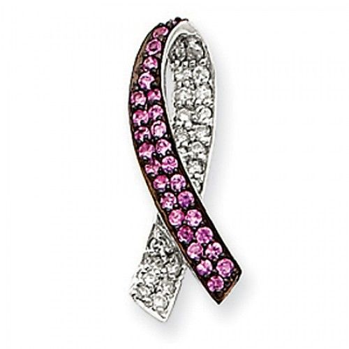 14k White Gold Breast Cancer Pink Sapphire and Diamond Slide |