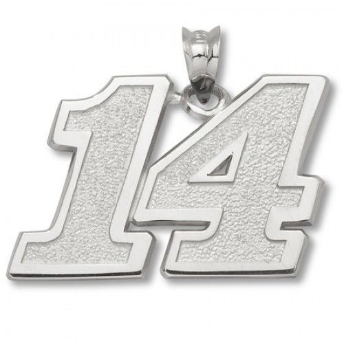 14k White Gold Driver Tony Stewart #14 Nascar Pendant - 5/8