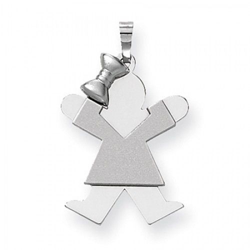 14k White Gold Joy Pendant - Petite Girl with V-Neck Dress and Bow