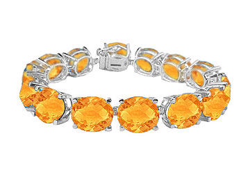 This classy and versatile bracelet surrounded on your wrist with oval faceted cut citrines in prong-setting. Each stone size consists of 10X8 MM and the bracelet is 7 inches long with a lobster clasp. The entire bracelet is made in 14K white gold and has a total gem weight (TGW) of 50.00 carats.