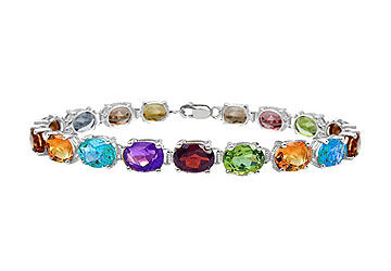 Gorgeous and elegance bracelet surrounded on your wrist with oval faceted cut multi-color gemstones in prong-setting. Each stone size consists of 5X7 MM and the bracelet is 7 inches long with a lobster clasp. The entire bracelet is made in 14K white gold and has a total gem weight (TGW) of 15.00 carats.