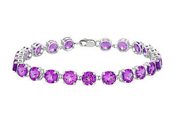 This classy and versatile bracelet surrounded on your wrist with round amethysts in prong-setting. Each stone size consists of 5.5 MM and the bracelet is 7 inches long with a lobster clasp. The entire bracelet is made in 14K white gold and has a total gem weight (TGW) of 12.00 carats.