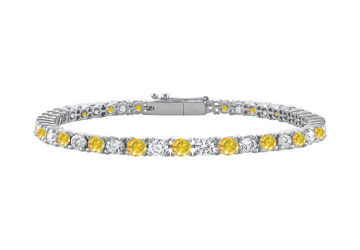 A continuous row of gems signifies your everlasting love. Yellow sapphires alternate beautifully with round white CZs in a 14K white gold prong-setting. With a total gem weight (TGW) of 3.00 carats. this tennis bracelet makes a great way to express your eternal love.