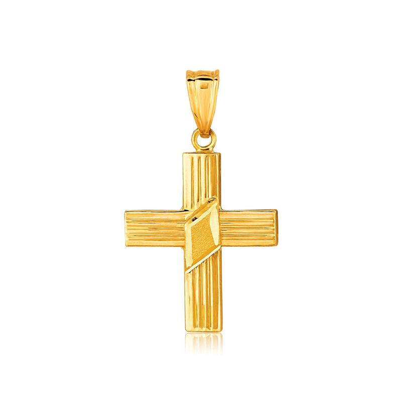 14K Yellow Gold Fancy Ridged Cross Pendant