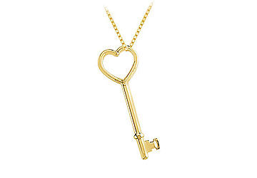 Simple elegance heart key pendent is perfectly made in fine polished 14K yellow gold and comes with standard 16 inches gold chain. The size of this pendant is 52.00mm X 17.75mm. This heart key pendant is conveying a secret message of love.