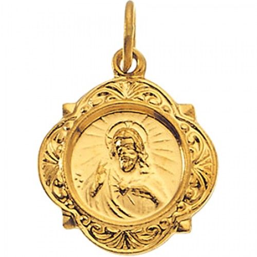 14k Yellow Gold Sacred Heart of Jesus Medal - 12 X 12mm |