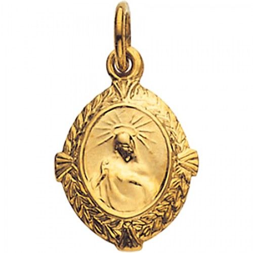 14k Yellow Gold Sacred Heart of Jesus Medal Pendant