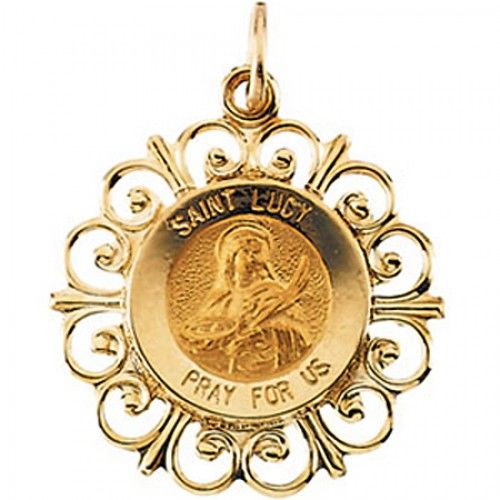 14k Yellow Gold St. Lucy Pendant Medal 18.5mm |