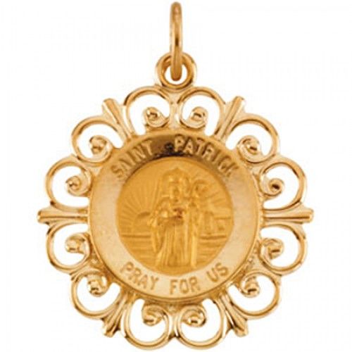 14k Yellow Gold St. Patrick Pendant Medal 18.5mm |