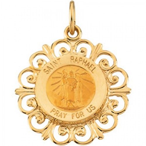 14k Yellow Gold St. Raphael Pendant Medal 18.5mm
