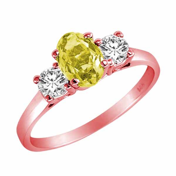 This dazzling sparkling timeless ring is classic and can be used as an engagement ring, anniversary ring, bridal ring, promise ring, proposal ring, fashion ring, wedding ring, cocktail ring and also to represent eternal love between you and that special someone.This 18K rose gold diamond ring is prong set with 2 round diamonds with a total carat weight of 0.40 carats and 1 oval lemon quartz gemstone with a total carat weight of 0.60 carats. The total carat weight of all the stones are approximately 0.95 carats. The diamonds are F-G color and SI1 clarity. The ring band measures approximately 1.80 mm wide and 1.0 mm thick. All our jewelry is shipped via FedEx Ground with a Certificate of Authenticity, jewelry polishing cloth, and jewelry box. BRAND : BRITNEY DIAMOND CLARITY : VS DIAMOND COLOR : F-G DIAMOND COUNT : 2 DIAMOND SETTING : PRONGS DIAMOND SHAPE : ROUND DIAMOND TCW : 0.45 GEM CATEGORY : LEMON QUARTZ GEM COUNT : 1 GEM SETTING : PRONGS GEM SHAPE : OVAL METAL : 18K ROSE GOLD SPECIAL : 3 STONE