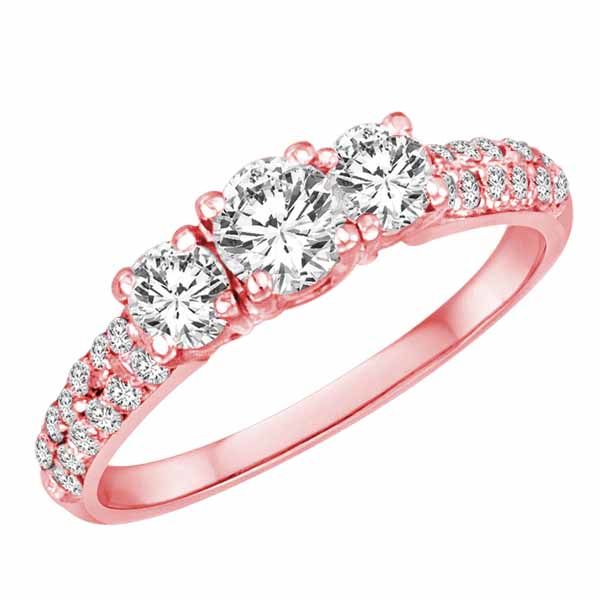 This dazzling sparkling timeless ring is classic and can be used as an engagement ring, anniversary ring, bridal ring, promise ring, proposal ring, fashion ring, wedding ring, cocktail ring and also to represent eternal love between you and that special someone.This 18K rose gold diamond ring is prong set with 23 round diamonds. The center diamond has a total carat weight of 0.40 carats, the 2 side diamonds have a total carat weight of 0.40 carats, and the 20 diamonds on the shank have a total carat weight of 0.20 carats. The total diamond weight is approximately 1 carat. The diamonds are F-G color and SI1 clarity. The ring band measures approximately 2.50 mm wide and 1.9 mm thick. All our jewelry is shipped via FedEx Ground with a Certificate of Authenticity, jewelry polishing cloth, and jewelry box. Size 11 1/40 BRAND : BRITNEY DIAMOND CLARITY : VS DIAMOND COLOR : F-G DIAMOND COUNT : 23 DIAMOND SETTING : PRONGS DIAMOND SHAPE : ROUND DIAMOND TCW : 1 METAL : 18K ROSE GOLD SPECIAL : ENGAGEMENT RINGS