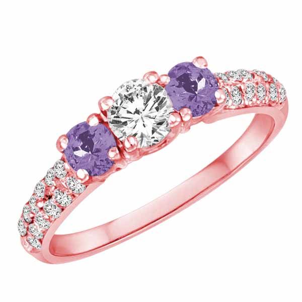 This dazzling sparkling timeless ring is classic and can be used as an engagement ring, anniversary ring, bridal ring, promise ring, proposal ring, fashion ring, wedding ring, cocktail ring and also to represent eternal love between you and that special someone.This 18K rose gold diamond ring is prong set with 1 round diamond with a total carat weight of 0.45 carats and 2 round tanzanite gemstones with a total carat weight of 0.50 carats. There also also 20 sparkly diamonds on the shank of this ring (10 on each side) with a total carat weight of 0.20 carats The total carat weight of all the stones are approximately 1.15 carats. The diamonds are F-G color and SI1 clarity. The ring band measures approximately 1.80 mm wide and 1.0 mm thick. All our jewelry is shipped via FedEx Ground with a Certificate of Authenticity, jewelry polishing cloth, and jewelry box. Size 11 1/40 BRAND : BRITNEY DIAMOND CLARITY : VS DIAMOND COLOR : F-G DIAMOND COUNT : 21 DIAMOND SETTING : PRONGS DIAMOND SHAPE : ROUND DIAMOND TCW : 0.55 GEM CATEGORY : TANZANITE GEM COUNT : 2 GEM SETTING : PRONGS GEM SHAPE : ROUND METAL : 18K ROSE GOLD SPECIAL : ENGAGEMENT RINGS