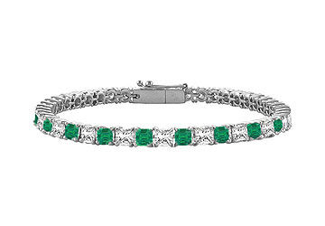 This never ending chain of alternating emeralds and princess-cut diamonds symbolizes your timeless love. Crafted in 18K white gold held in a prong setting this tennis bracelet has a total gem weight (TGW) of 3.00 carats. A great way to honor your union.