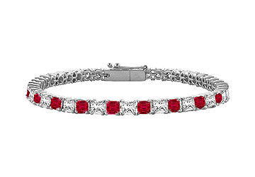 This never ending chain of alternating Rubies and princess-cut diamonds symbolizes your timeless love. Crafted in 18K white gold held in a prong setting this tennis bracelet has a total gem weight (TGW) of 3.00 carats. A great way to honor your union.