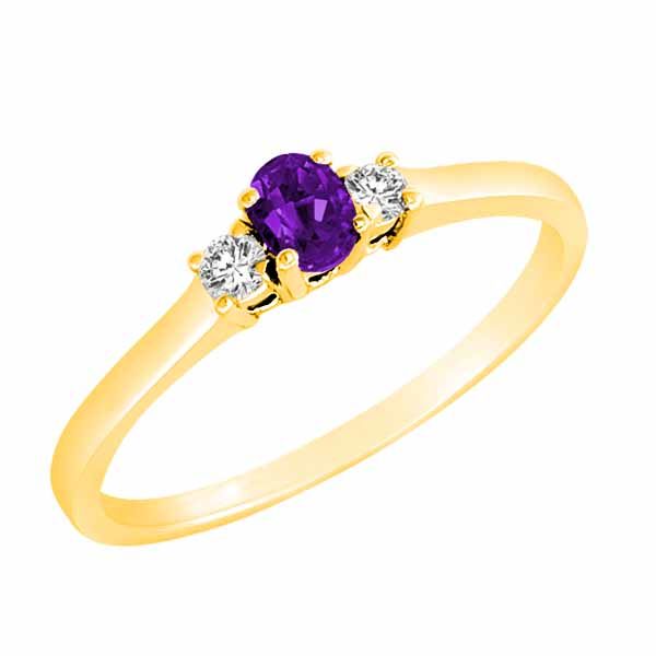 This dazzling sparkling timeless ring is classic and can be used as an engagement ring, anniversary ring, bridal ring, promise ring, proposal ring, fashion ring, wedding ring, cocktail ring and also to represent eternal love between you and that special someone.This 18K yellow gold diamond ring is prong set with 2 round diamonds with a total carat weight of 0.09 carats and 1 oval amethyst gemstone with a total carat weight of 0.16 carats. The total carat weight of all the stones are approximately 0.25 carats. The diamonds are F-G color and SI1 clarity. The ring band measures approximately 1.50 mm wide and 1.0 mm thick. All our jewelry is shipped via FedEx Ground with a Certificate of Authenticity, jewelry polishing cloth, and jewelry box. BRAND : BRITNEY DIAMOND CLARITY : VS DIAMOND COLOR : F-G DIAMOND COUNT : 2 DIAMOND SETTING : PRONGS DIAMOND SHAPE : ROUND DIAMOND TCW : 0.09 GEM CATEGORY : AMETHYST GEM COUNT : 1 GEM SETTING : PRONGS GEM SHAPE : OVAL METAL : 18K YELLOW GOLD SPECIAL : SEMI PRECIOUS JEWELRY