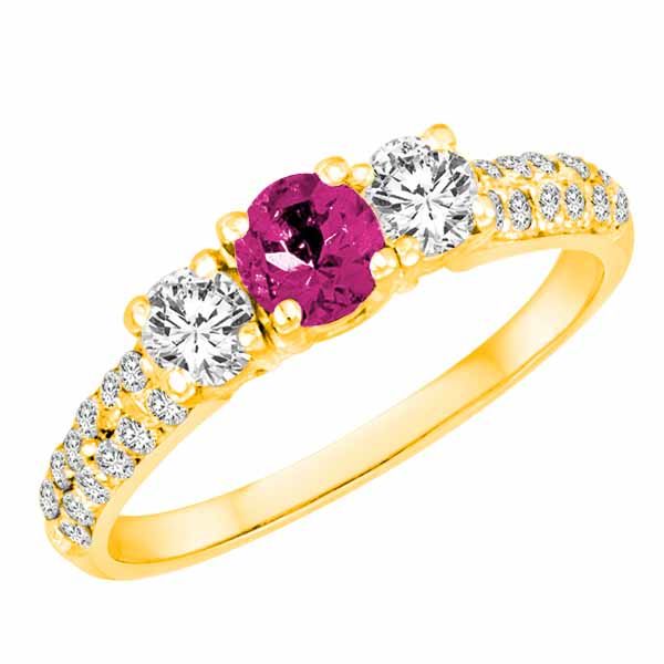 This dazzling sparkling timeless ring is classic and can be used as an engagement ring, anniversary ring, bridal ring, promise ring, proposal ring, fashion ring, wedding ring, cocktail ring and also to represent eternal love between you and that special someone.This 18K yellow gold diamond ring is prong set with 2 round diamonds with a total carat weight of 0.45 and 1 round pink topaz gemstone with a total carat weight of 0.45 carats. There are 20 sparkly diamonds on the shank of this ring (10 on each side) with a total carat weight of 0.20 carats. The total carat weight of all the stones are approximately 1.10 carats. The diamonds are F-G color and SI1 clarity. The ring band measures approximately 2.50 mm wide and 1.9 mm thick. All our jewelry is shipped via FedEx Ground with a Certificate of Authenticity, jewelry polishing cloth, and jewelry box. Size 11 1/2 BRAND : BRITNEY DIAMOND CLARITY : VS DIAMOND COLOR : F-G DIAMOND COUNT : 22 DIAMOND SETTING : PRONGS DIAMOND SHAPE : ROUND DIAMOND TCW : 0.6 GEM CATEGORY : PINK TOPAZ GEM COUNT : 1 GEM SETTING : PRONGS GEM SHAPE : ROUND METAL : 18K YELLOW GOLD SPECIAL : ENGAGEMENT RINGS