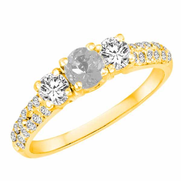 This dazzling sparkling timeless ring is classic and can be used as an engagement ring, anniversary ring, bridal ring, promise ring, proposal ring, fashion ring, wedding ring, cocktail ring and also to represent eternal love between you and that special someone.This 18K yellow gold diamond ring is prong set with 2 round diamonds with a total carat weight of 0.45 and 1 round white quartz gemstone with a total carat weight of 0.45 carats. There are 20 sparkly diamonds on the shank of this ring (10 on each side) with a total carat weight of 0.20 carats. The total carat weight of all the stones are approximately 1.10 carats. The diamonds are F-G color and SI1 clarity. The ring band measures approximately 2.50 mm wide and 1.9 mm thick. All our jewelry is shipped via FedEx Ground with a Certificate of Authenticity, jewelry polishing cloth, and jewelry box. Size 11 1/2 BRAND : BRITNEY DIAMOND CLARITY : VS DIAMOND COLOR : F-G DIAMOND COUNT : 22 DIAMOND SETTING : PRONGS DIAMOND SHAPE : ROUND DIAMOND TCW : 0.6 GEM CATEGORY : WHITE QUARTZ GEM COUNT : 1 GEM SETTING : PRONGS GEM SHAPE : ROUND METAL : 18K YELLOW GOLD SPECIAL : ENGAGEMENT RINGS