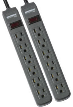 - Two units in one pack - Protects against line surges - and spikes Six grounded outlets each - Wall mountable - Two-year manufacturer's warranty - UL 1449 certified - 241 Joules