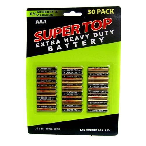 30 Pc Aaa Batteries - Heavy Duty Batteries Case Pack 24 Please note: If there is a color/size/type option, the option closest to the image will be shipped (Or you may receive a random color/size/type). BRAND : DDI PRODUCT_CODE : 633040102030 PRODUCT_CODE_TYPE : UPC