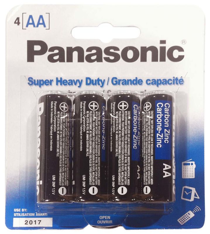 This Is A 4 Pack Of -AA-, Genuine Pansonic Brand Batteries. Thiese Are Carbon Zinc Type Of Batteries Suitable For Toys, Cordless Micophones, Flashlights, And Many Other Items. It's Always A Good Idea To Stock Up On Batteries For The Holidays, Or For Emergencies. Super Heavy Duty 4 Pack Carbon Zinc Battery Genuine Panasonic Brand Superior Quality BRAND : PANASONIC