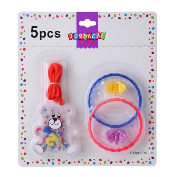 Five piece girls bangle and accessory pack in assorted colors. Case Pack 72 Please note: If there is a color/size/type option, the option closest to the image will be shipped (Or you may receive a random color/size/type). Additional Details As we rotate stock, everything with an expiration date will have at least a 2 year shelf life (unless otherwise specified)null BRAND : DDI PRODUCT_CODE : 613153010156 PRODUCT_CODE_TYPE : UPC