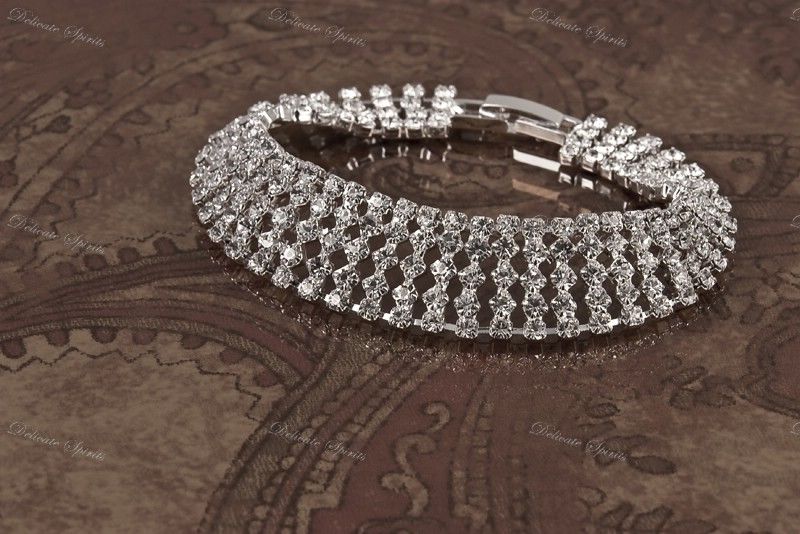 Wedding Bridal Bracelet Silver With 5 Rows Of Swarovski Rhinestone Elements |