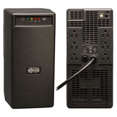 Tripp Lite's BC600SINE UPS system provides long-lasting battery backup for professional workstations, PCs, networking equipment and other sensitive electronics. Sine wave output in both line and battery power modes provides compatibility with all electronic loads, including PC and Mac systems fitted with Active Power Factor Corrected (PFC) power supplies. Uninterruptible Power Supply switches to battery derived sine wave AC output during power failures and severe voltage fluctuations so that connected equipment can be operated normally and shut down without data loss. Provides 18 minutes battery runtime with a typical desktop computer system (100 watts). Includes 3 battery-supported outlets for computer, monitor and one vital system peripheral, plus 3 additional surge suppression-only outlets for printers and other system accessories not requiring battery support. USB port enables optional unattended system shutdown without data loss in case of extended power failure; cable included. USB interface enables integration with built-in power management and auto shutdown features of Windows and Mac OS X. PowerAlert software is also included for a variety of desktop and network shutdown agents. Built-in audible alarm and 4 front-panel LEDs indicate line power status, battery power status, overload status and battery low/replace status. 650VA/375W power handling ability supports professional workstations, desktop PCs, point-of-sale equipment, small business phone systems, audio/video equipment and home theater systems. Supports user battery replacement via built-in access panel. 3-year warranty. $150,000 connected equipment insurance (USA, Puerto Rico, & Canada only). Key Features Tripp Lite?s BC600SINE tower, sine wave UPS system provides long-lasting battery backup for a variety of computer and electronic applications Sine wave output in both line and battery modes provides compatibility with all electronic loads, including PC and Mac systems fitted with Active Power Factor Corrected (PFC) power supplies BC600SINE UPS system switches to battery derived sine wave AC output during power failures and severe voltage fluctuations with enough time to shut down without data loss 650VA / 375 watt UPS capacity with 3.3 minutes runtime at 100% load and 11.1 minutes at 50% load Provides 18 minutes battery runtime with a typical desktop computer system consuming 100 watts Includes 3 battery-supported outlets for computer, monitor and one vital system peripheral, plus 3 additional surge suppression-only outlets for printers and other system accessories not requiring battery support USB port enables optional unattended system shutdown without data loss in case of extended power failure; USB cable included HID enabled USB interface enables integration with built-in power management and auto shutdown features of Windows and Mac OS X PowerAlert software CD included Built-in audible alarm with cancel switch warns of power failure conditions; once silenced, alarm will re-sound as batteries approach full discharge Alarm can be permanently silenced via PowerAlert interface 4 front panel LEDs indicate line power status, battery power status, overload status and battery low/replace status Supports user battery replacement via built-in access panel 3 year product warranty / $150,000 Ultimate Lifetime Insurance (USA, Puerto Rico & Canada only) Package Includes BC600SINE UPS System USB Cable Owner's manual BRAND : TRIPP LITE