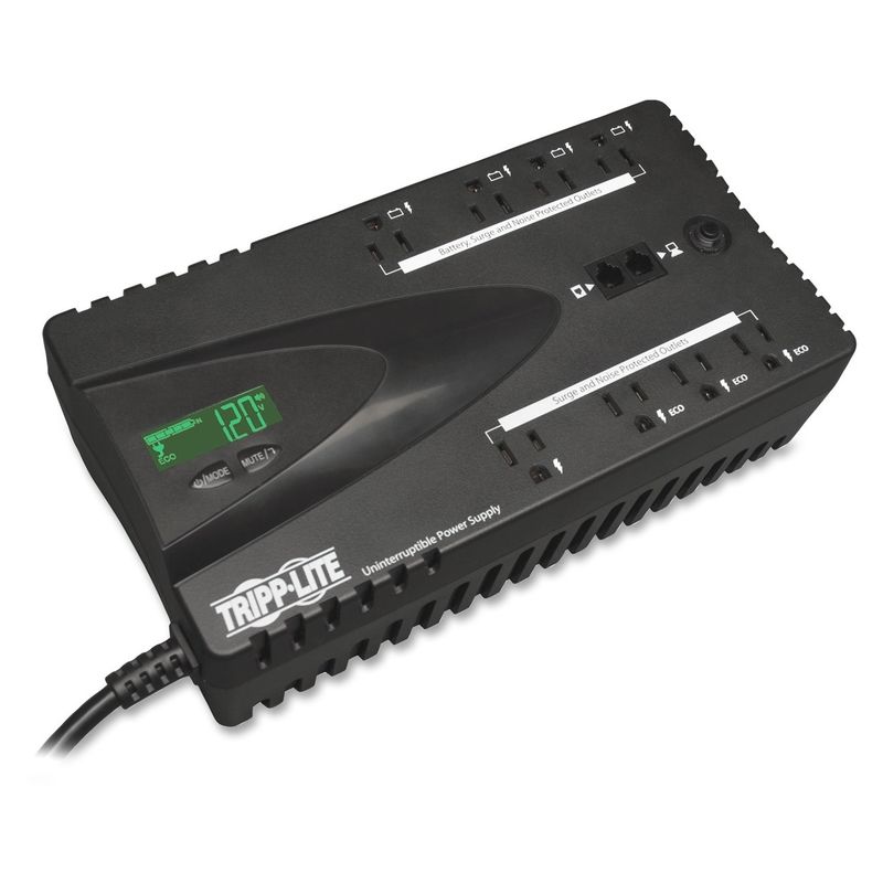 Ultra-compact, green UPS system is the ideal green solution for complete protection against blackouts, brownouts and power surges. Its 650VA/325-watt, power handling capacity supports entry-level PC systems for up to 17 minutes during blackouts. With a power efficiency rating of 99 percent, this UPS offers energy savings plus cooler operation by limiting UPS power consumption. Interactive LCD screen displays operating conditions and lets you change settings. Design also features four battery-supported outlets for computer and peripherals plus four surge suppression-only outlets for accessories not requiring battery support. Three of the surge-only outlets are ECO outlets that can be configured to automatically power off unused computer accessories. Built-in, single-line, tel/DSL (RJ11) jacks protect a modem, fax machine or phone. One USB port (USB cable included) plus free PowerAlert software enable unattended system shutdown without data loss in the case of an extended power failure.