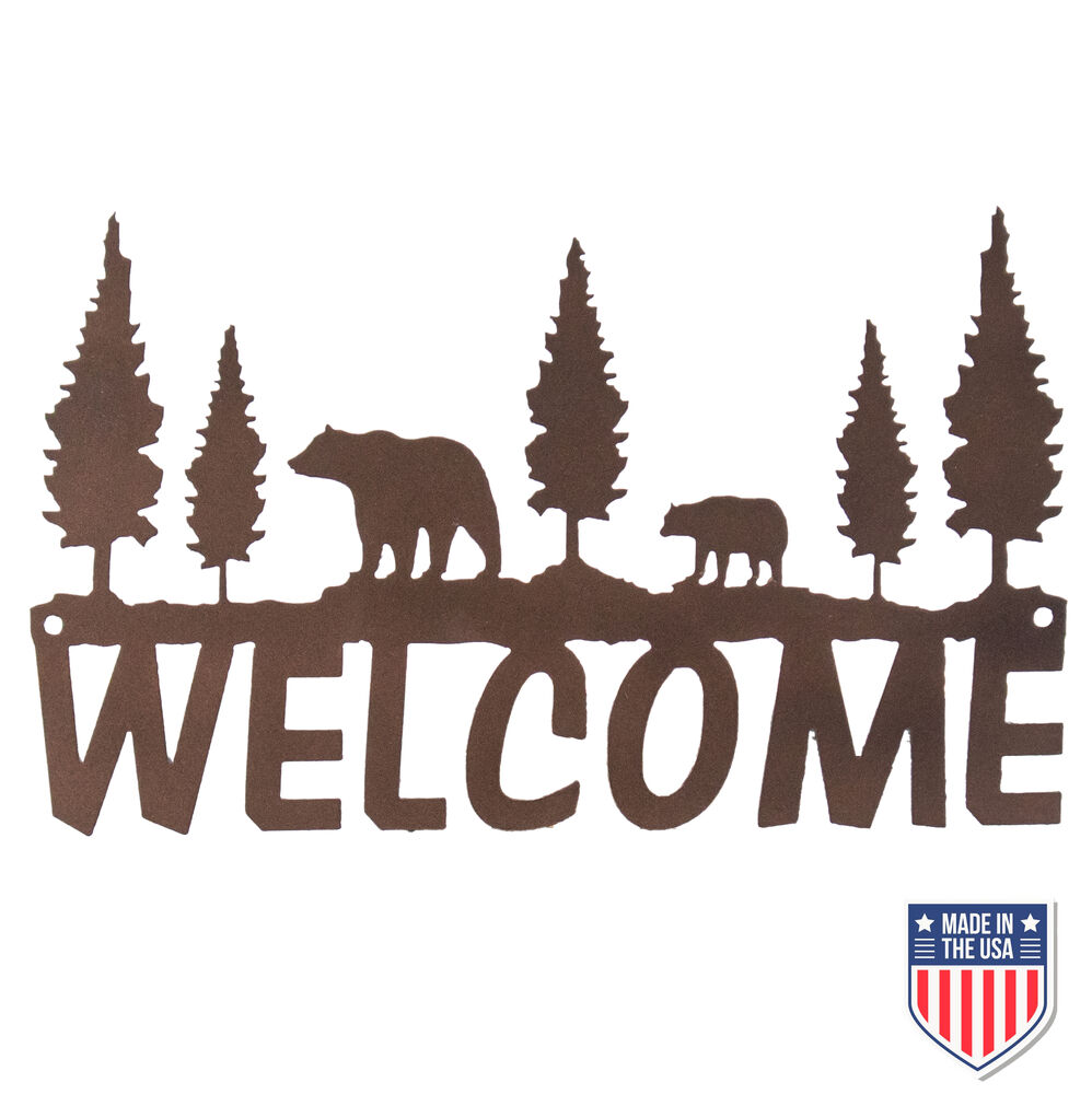 Enhance your entryway, porch, or living space with the Rustic Metal Welcome Sign featuring a Bear and Tree Design. This nature-inspired metal wall art combines intricate craftsmanship with durable functionality, making it a standout addition to any rustic home decor or woodland-themed space. The laser-cut silhouettes of a bear, cub, and trees create a warm and inviting atmosphere, while its compact size of 11.5 inches by 7 inches ensures it fits seamlessly into both indoor and outdoor settings.Weather-Resistant Metal Welcome Sign for Outdoor Use
