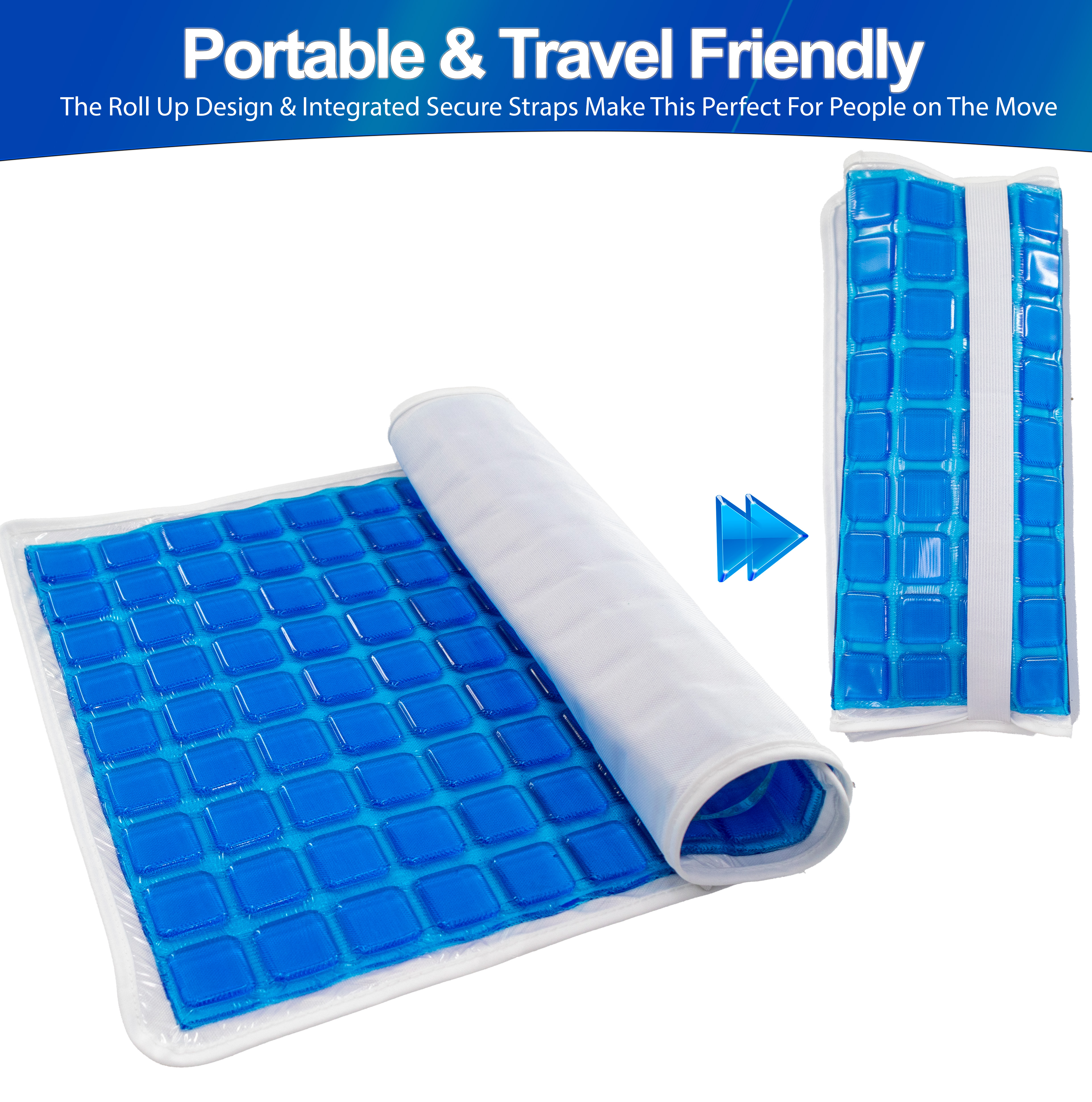 • • TRAVEL-FRIENDLY & PORTABLE FOR COOLING ON THE GO: Whether it's a vacation or a business trip, never compromise on comfort. Our Cooling Gel Cell Pillow Pad's compact design ensures you can bring it wherever you go. Coupled with the cooling mat feature, it easily lays flat or can be rolled up and secured by its strap for perfect storage. Ensuring every night feels like home.