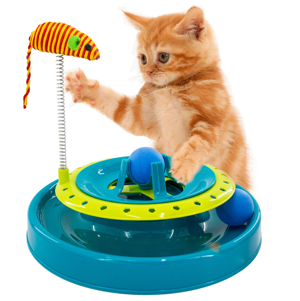 - • STIMULATES MENTAL AND PHYSICAL WELL-BEING: By engaging cats in interactive play, this toy stimulates both their minds and bodies, promoting overall well-being. The varied features, including the rolling balls and bouncing mouse, encourage physical exercise and mental engagement, helping to prevent boredom and related behavioral issues. Enhance your cat's quality of life.
