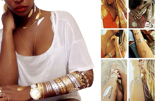 You can accessorize with peace of mind as they are made with 100% non-toxic materials. The Metallic Jewelry Tattoo line of products are completely safe to use for people of all ages. Whether you’re jumping in the pool, running around town, or dancing the night away, your glamorous jewelry tattoos will stick with you through it all!