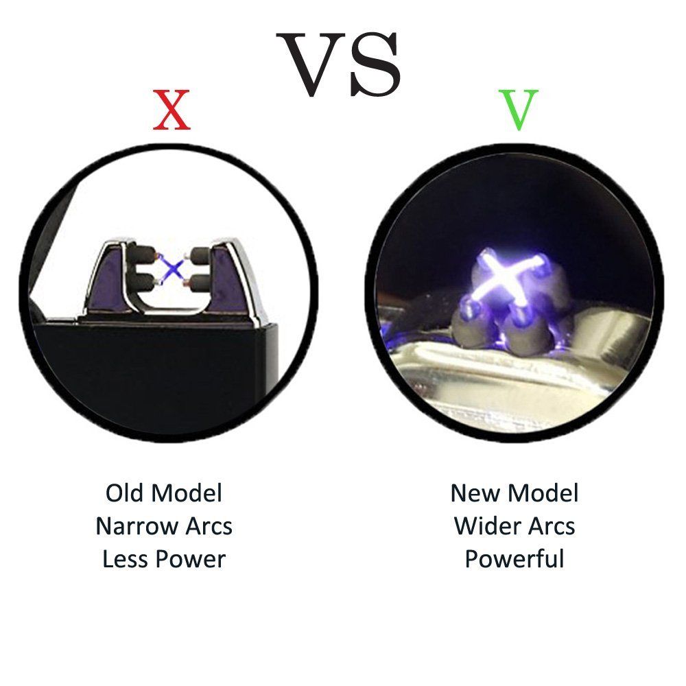 This USB rechargeable dual arch new open top tactical lighter is a revolutionary tesla plasma beam lighter that uses electricity instead of butane to generate a plasma wave hotter than fire! Just like a lightening bolt! The flameless dual arch atomic plasma wave can set anything ablaze instantly even in wind and rain! The new open top design create an unobstructed lighting service. Perfect for cigars, pipes, candles, BBQ grill, stoves, camping and more.Numerous studies have shown that traditional butane fuel is extremely toxic to humans so instead of using harmful chemicals like butane this Tactical Lighter uses an ultra powerful lithium ion cell to create a super heated plasma wave. It also has the added advantage of being completely windproof, splash proof and airport approved so you can take your lighter with you anywhere you go. The Tac Dual Arch Plasma Lighter is simple, safe, reliable, and with its sleek and elegant design, it makes a great gift for yourself or your friends.