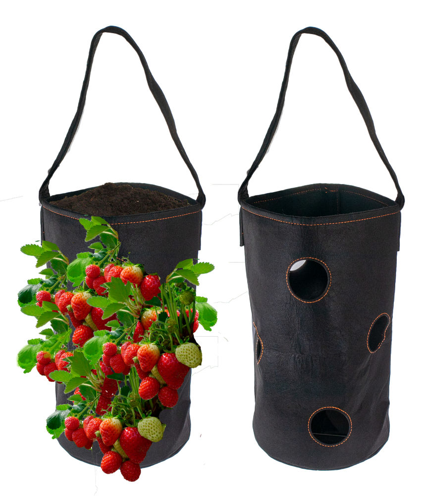 Planting strawberries lots of fun and using bare root plants is the easiest and most economical to do it. With our Gardens Hanging Strawberry Planter you don't have to worry about over watering the immature strawberry roots. The upside down design ensure that the roots receive ample water supply, while the fabric material ensures ample oxygen for the roots while promoting healthy root growth by using air pruning technology. No more planting them on mounds to ensure that they get ample oxygen. Our Bags reduce all fungus and insect diseases. No more decayed fruit due to lying on wet earth. This planter solves ALL the issues that usually come with growing Strawberries! So what are you waiting for, LETS GO GROW!