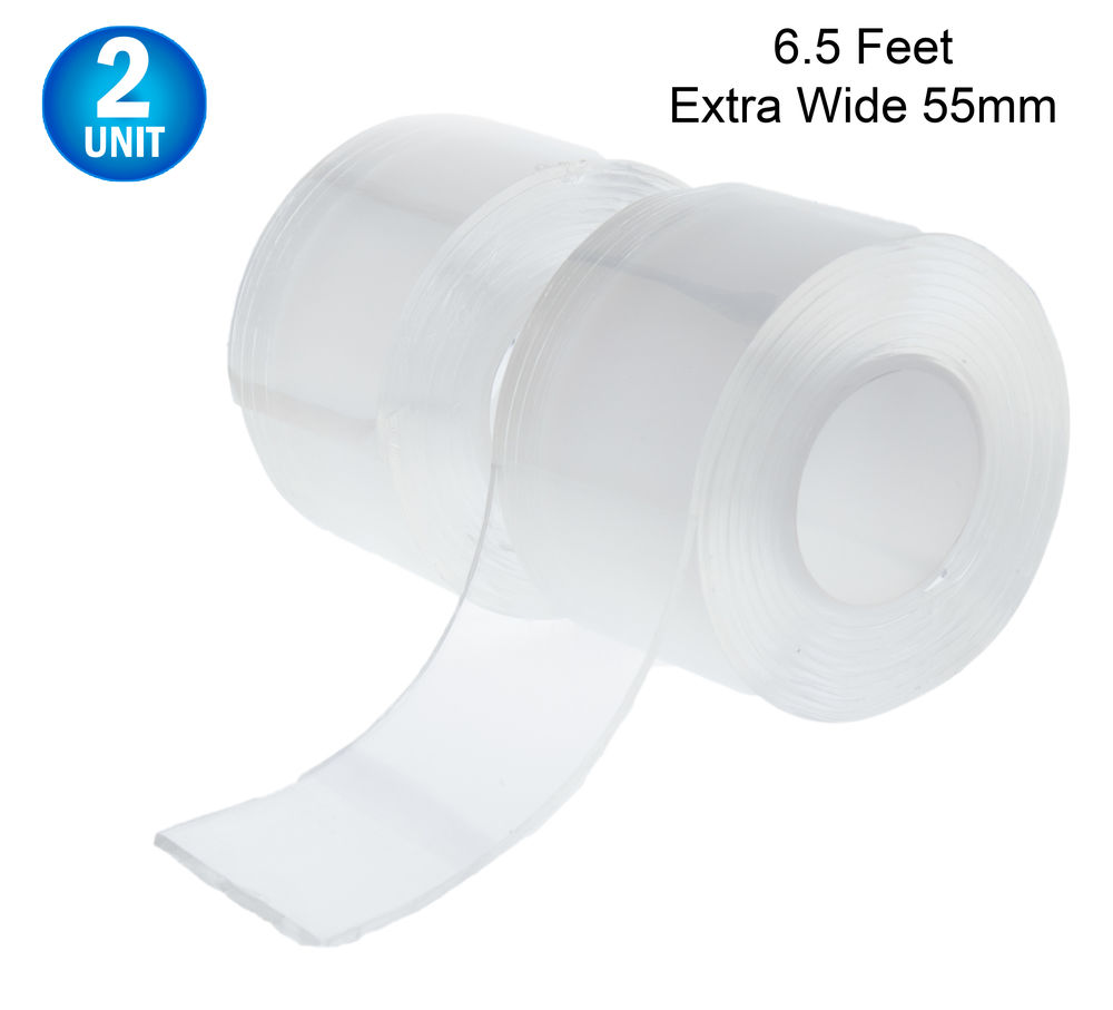 2pc Magic Gel Nano Silicone Extreme Grip Tape - Double-sided Reusable Washable Traceless Removable Grip Adhesive Clear Gel Tape - Extra Wide Premium