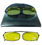 Night Vision Wraparounds improve color, clarity, and optical definition, so you can see better when driving. The special anti-glare lenses reduce eye strain and glare from headlights, streetlights and traffic lights in wet or dark conditions. Extremely Light weight, with adjustable center spring frame and plastic coated prongs for additional safety, Plus, these fashionable clip ons fit easily over your prescription glasses. It also protect from harmful UVA and UVB spectrums. Great for outdoor sports, baseball, hiking, fishing, golfing, tennis and more! Perfect for men or women. Lightweight. Comes with sunglasses case for safety daily storage.