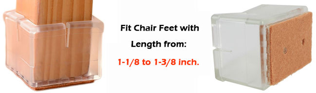 • • Plastic flexible sleeve conforms to the size and shape of the chair or table leg.