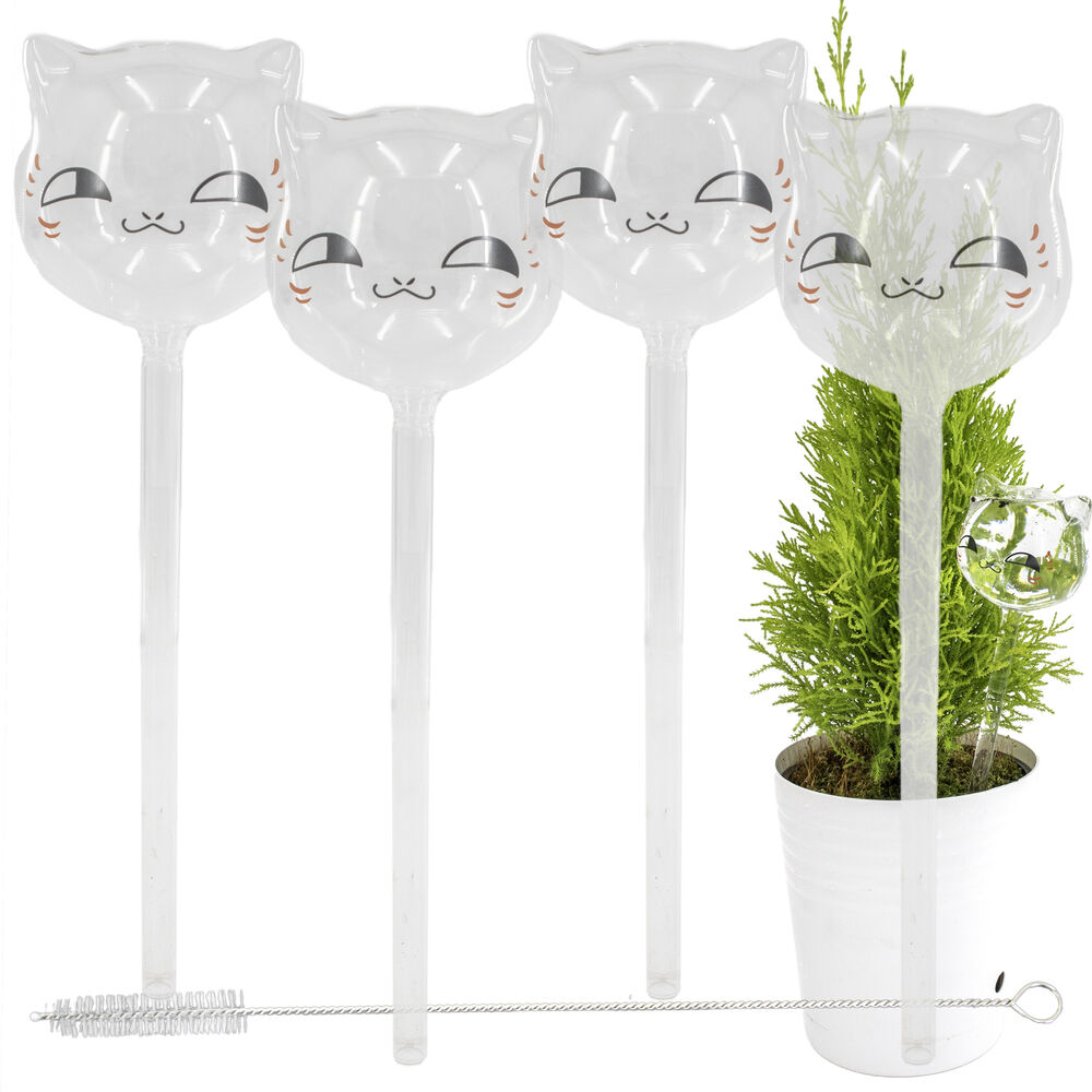 • • BEAUTIFUL HAND BLOWN GLASS CAT DESIGN ADDS DECORATIVE APPEAL: These Decorative Watering Globes are crafted from hand blown glass in the design of a kitten, adding an elegant and decorative touch to your indoor and outdoor plants. The glass material is durable and environmentally friendly, reducing the need for plastic watering devices. The transparent glass allows you to easily monitor water levels, ensuring timely refills and optimal plant hydration.