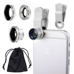 • • THREE GREAT LENSES IN ONE KIT: Awesome mobile photography for back or front facing cameras. Includes 3 quick connect lenses: fisheye lens, macro lens and wide angle lens. Combine with your favorite apps to share photos instantly.