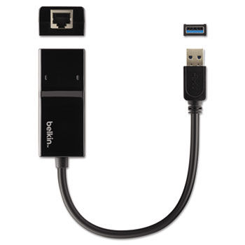 ADAPTER/CHARGER TYPE : USB ADAPTER BRAND : BELKIN COLORS : BLACK COLORS : BLACK CONNECTOR/PORT/INTERFACE : USB 3.0 TO GIGABIT FOR USE WITH : ULTRABOOKS AND TABLETS GLOBAL PRODUCT TYPE : ADAPTERS/CHARGERS-USB CABLE GREEN INDEX : N POST-CONSUMER RECYCLED CONTENT PERCENT : 0 % POST-CONSUMER RECYCLED CONTENT PERCENT : 0 % PRE-CONSUMER RECYCLED CONTENT PERCENT : 0 % PRE-CONSUMER RECYCLED CONTENT PERCENT : 0 % RECYCLABLE : N TOTAL RECYCLED CONTENT PERCENT : 0% UNIT OF MEASURE : EA