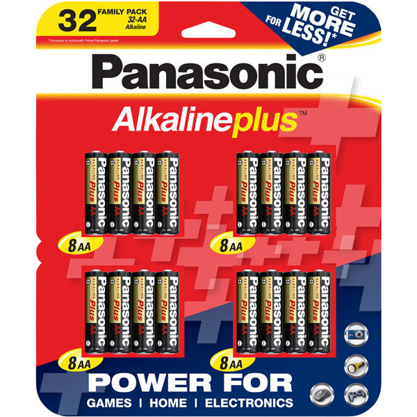 32 AA AKALINE PLUS AA 32-battery value pack of the most widely used battery Providing energy solutions for all types of electronics needsPackaged for retail sale BRAND : PANASONIC